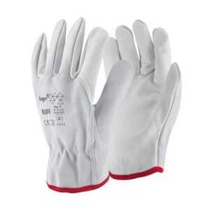 • Kesztyű munkavédelmi bivalybőr gumírozott mandzsettával fehér, 12